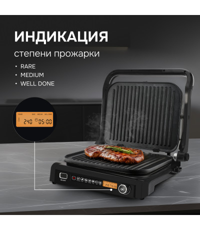 в большую жарочную поверхность – барбекю. Выбор степени прожарки мяса