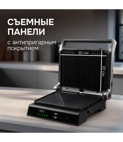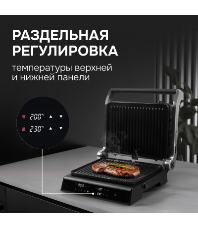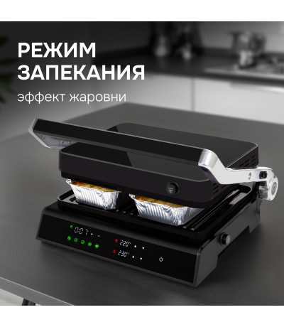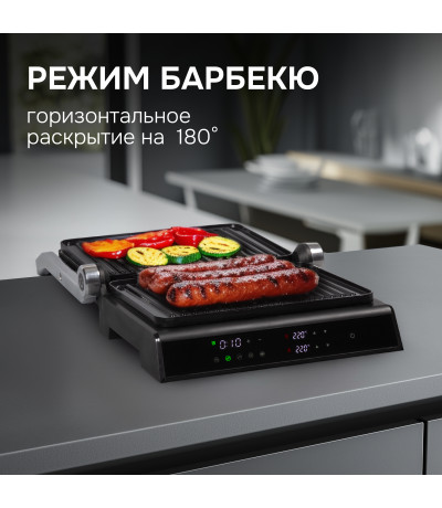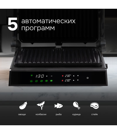 | Функциональные особенности | 4 в 1: гриль/барбекю/запекание/сэндвич-тостер, авторегулировка высоты верхней панели, 5 автоматических программ + ручной режим |