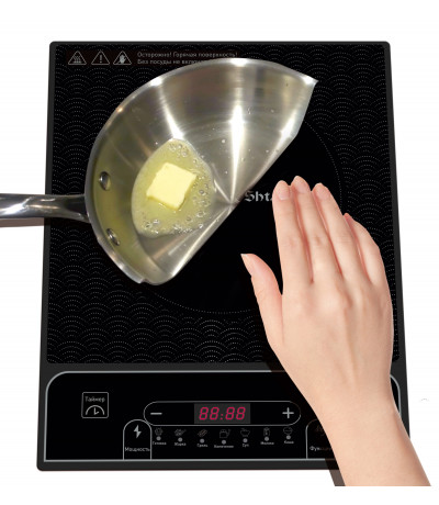 - Панель автоматически реагирует на размер и площадь дна посуды, распределяя мощность нагревания.