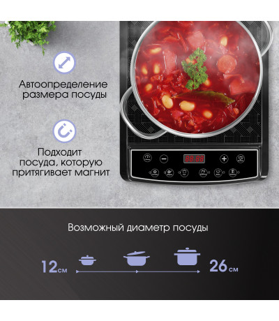 | Автоматическое определение диаметра посуды, см | 12-26 |