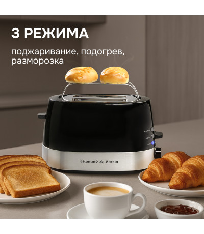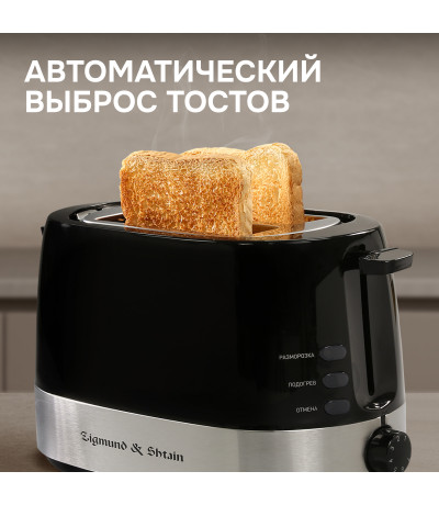Модель Zigmund & Shtain ST-80B отлично справляется с быстрым приготовлением тостов. Тостер автоматически центрирует содержимое, чтобы куски хлеба прожаривались равномерно. Функция подъема позволяет аккуратно приподнимать их, чтобы пользователь не обжегся. С помощью кнопки отмены можно остановить прожарку в любое время.