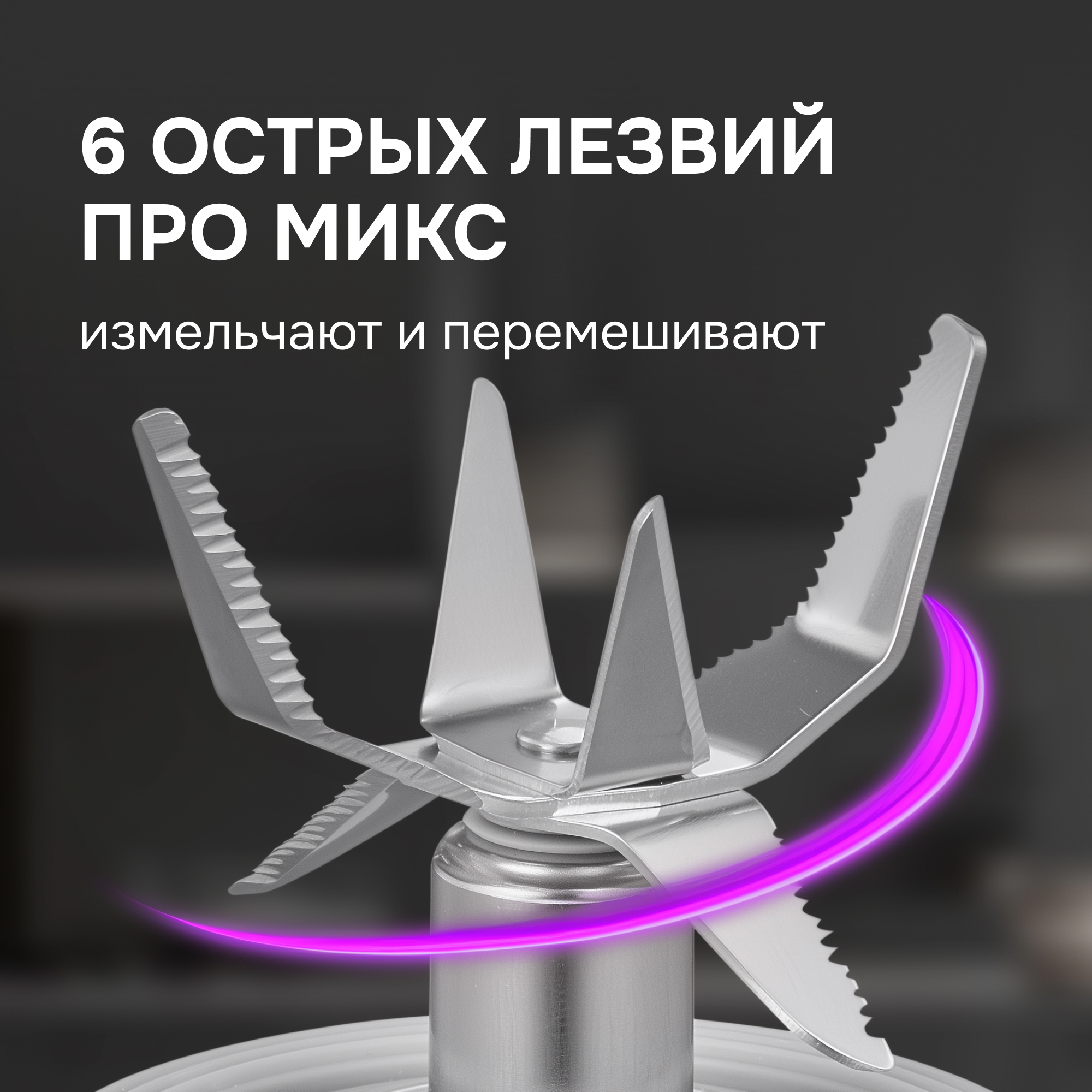 Оригинальная система ножей ПРОмикс+ состоит из 6 острых лезвий из