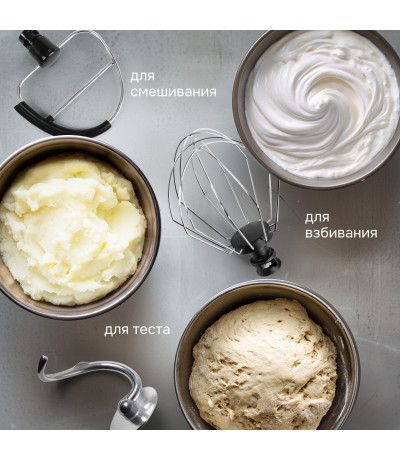 качественного замешивания всех видов текста, эффективного взбивания крема и