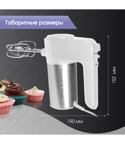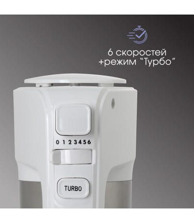 | Комплектация | Миксер, насадка-венчик (2 шт), насадка-крюк, инструкция, гарантийный талон |