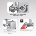 | Комплектация | мясорубка, 3 насадки диска, насадка для кэббе, насадка для приготовления колбас, инструкция, гарантийный талон |