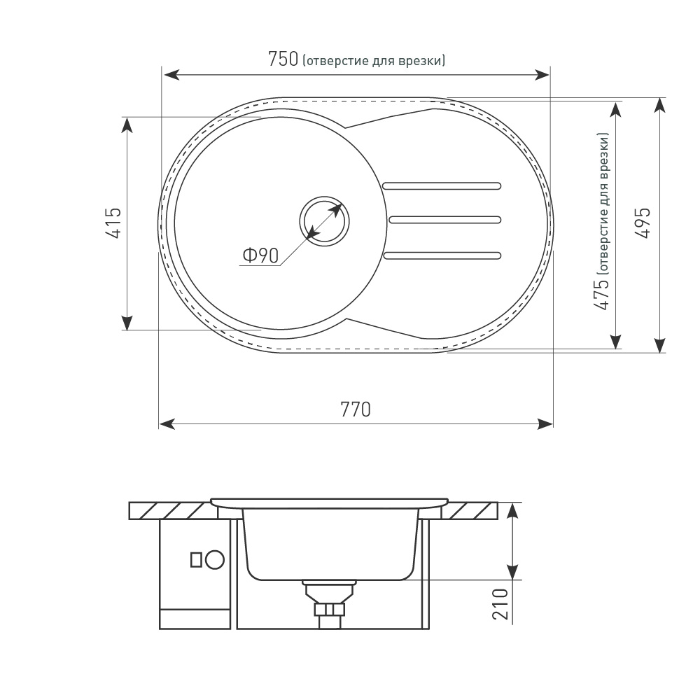 Производитель на свое усмотрение и без дополнительных уведомлений может менять комплектацию, внешний вид, страну производства и технические характеристики модели. Рекомендуется производить выпил отверстия под мойку в столешнице, только после измерения фактических размеров приобретенной мойки