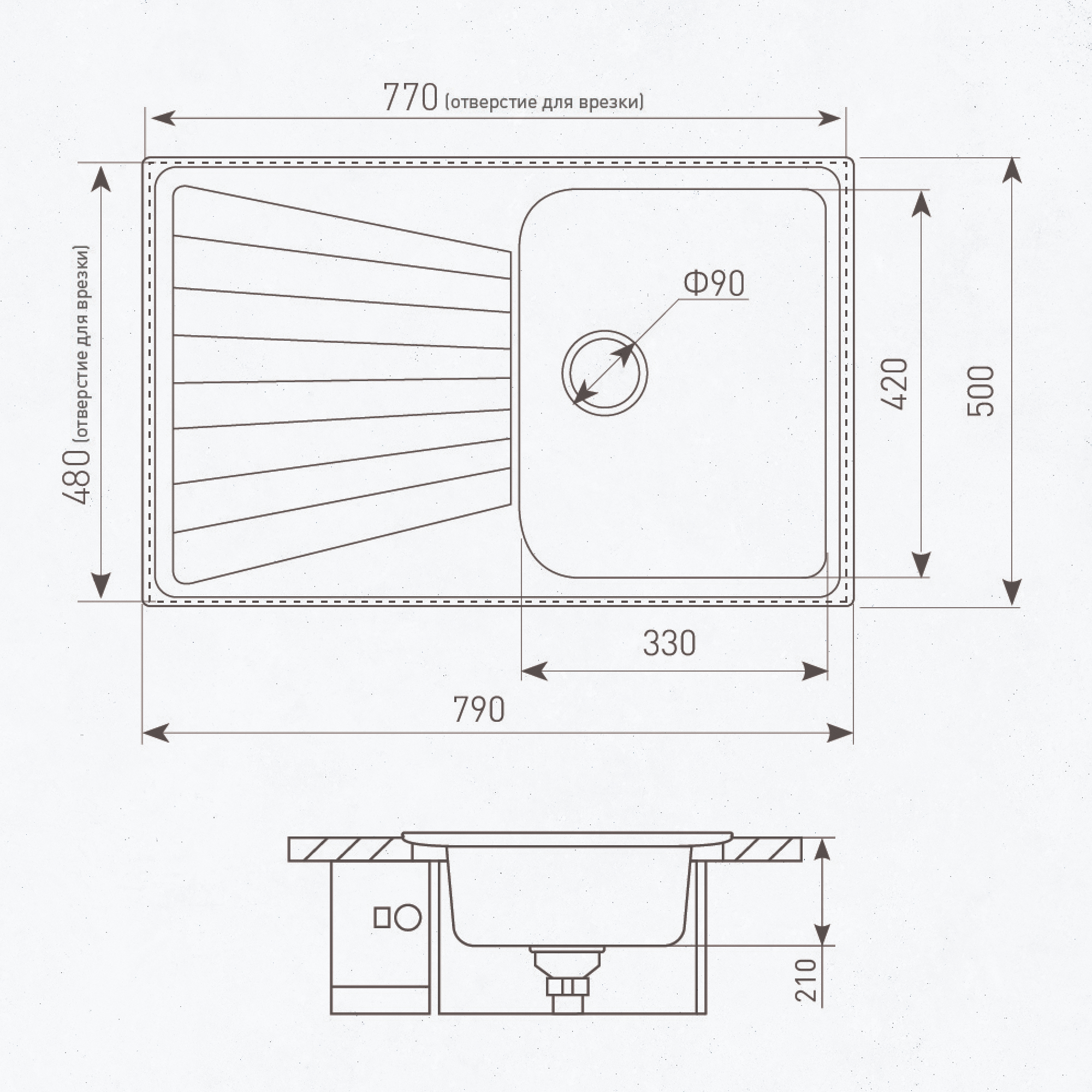 Просторная чаша и обширное крыло – вот основные преимущества гранитной мойки KLASSISCH 790. Ее габаритные размеры – 790*500 мм., при чаше глубиной в 19см. Классический вариант, не имеющий ничего лишнего. Чаша занимает примерно половину всей ширины раковины, а крыло свободно пристыковывается к поверхности столешницы. Если они имеют одинаковую фактуру и цвет, то не сразу можно разобрать, где кончается мойка и начинается рабочая часть стола, особенно если добавить к этому гармонично вписывающуюся в границы любой столешницы прямоугольную форму. Материал мойки – гранит. Специфические свойства поверхности придают раковине особую прочность и инертность к воздействию химических веществ различного происхождения.