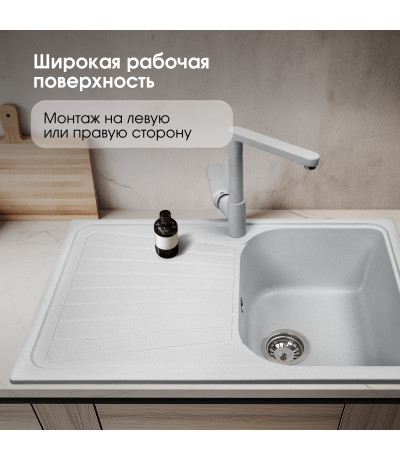 Просторная чаша и обширное крыло – вот основные преимущества гранитной мойки KLASSISCH 790. Ее габаритные размеры – 790*500 мм., при чаше глубиной в 19см. Классический вариант, не имеющий ничего лишнего. Чаша занимает примерно половину всей ширины раковины, а крыло свободно пристыковывается к поверхности столешницы. Если они имеют одинаковую фактуру и цвет, то не сразу можно разобрать, где кончается мойка и начинается рабочая часть стола, особенно если добавить к этому гармонично вписывающуюся в границы любой столешницы прямоугольную форму. Материал мойки – гранит. Специфические свойства поверхности придают раковине особую прочность и инертность к воздействию химических веществ различного происхождения.
