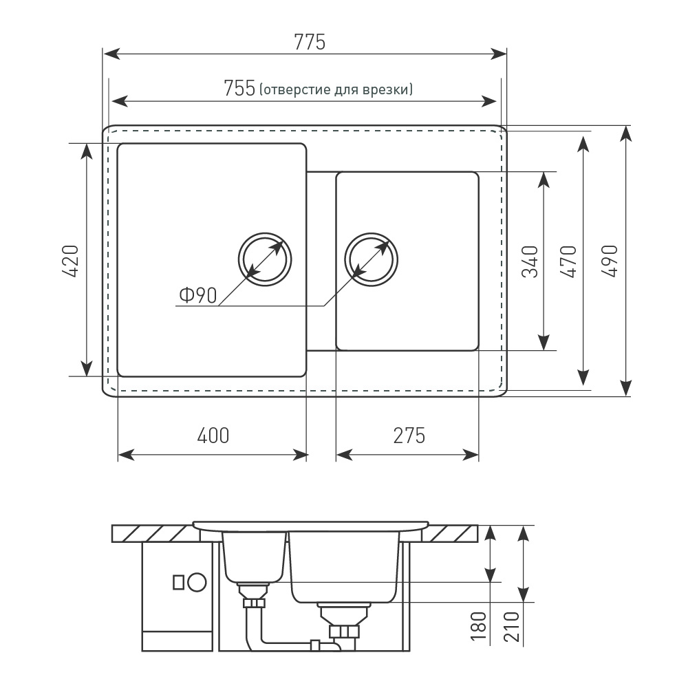 Модель RECHTECK 400.275 - эта двухчашевая эргономичная мойка имеет габаритные размеры 775*490 мм. и устанавливается на шкаф 70 см. Параметры большой чаши составляют 420*400 мм., тогда как малой 275*340 мм. Вторая чаша – это своего рода дополнительный рабочий инструмент на кухне. В ней можно мыть отдельно овощи и фрукты, размораживать мясо, складывать чистую посуду или поставить емкость, куда удобно складывать продукты, нарезанные на разделочной доске, которую можно расположить тут же, на крыле мойки. Такая модель займет меньше места, чем двухчашевая с крылом, но по своему функционалу ни в чем ей не уступает. Ее поверхность устойчива к механическим повреждениям, воздействию ультрафиолета, щелочей и кислот. Материал обладает всеми необходимыми гигиеническими свойствами. Он совершенно безопасен с точки зрения экологии и в течение длительного времени не теряет своих первоначальных эксплуатационных качеств.