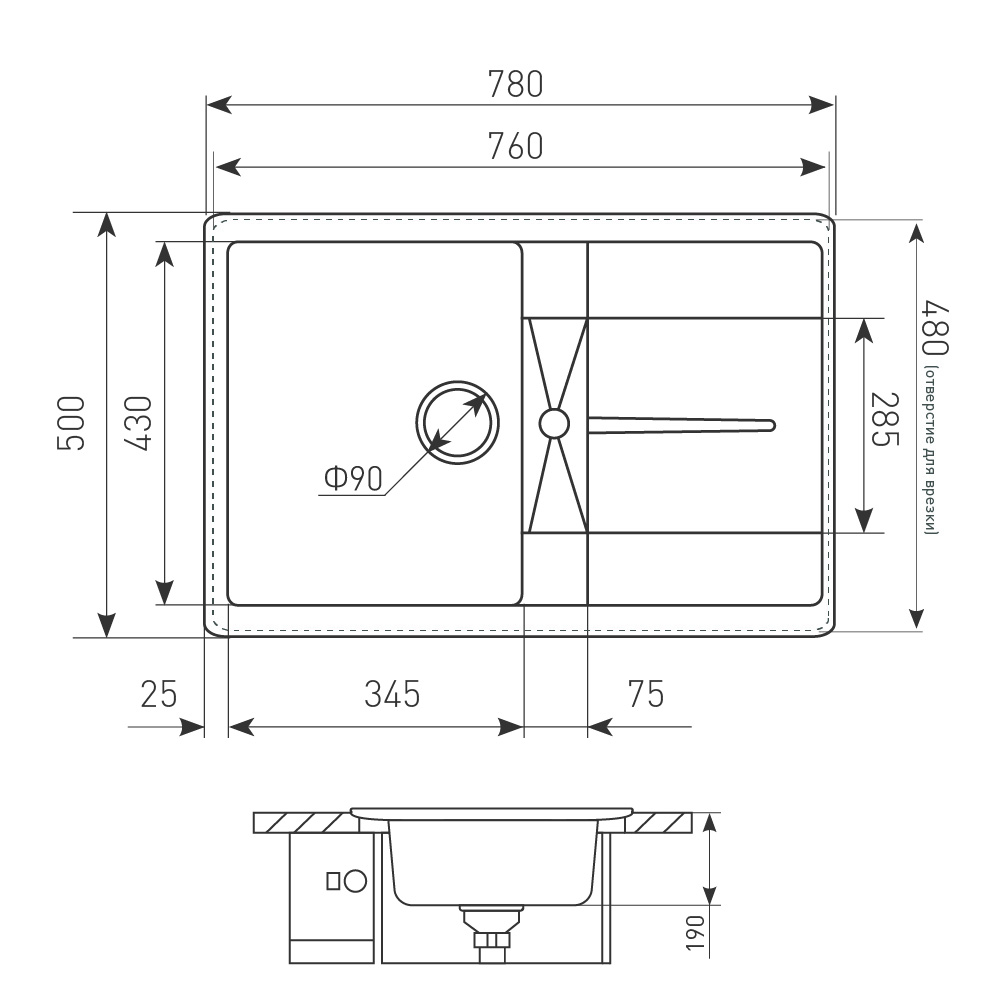 Производитель на свое усмотрение и без дополнительных уведомлений может менять комплектацию, внешний вид, страну производства и технические характеристики модели. Рекомендуется производить выпил отверстия под мойку в столешнице, только после измерения фактических размеров приобретенной мойки