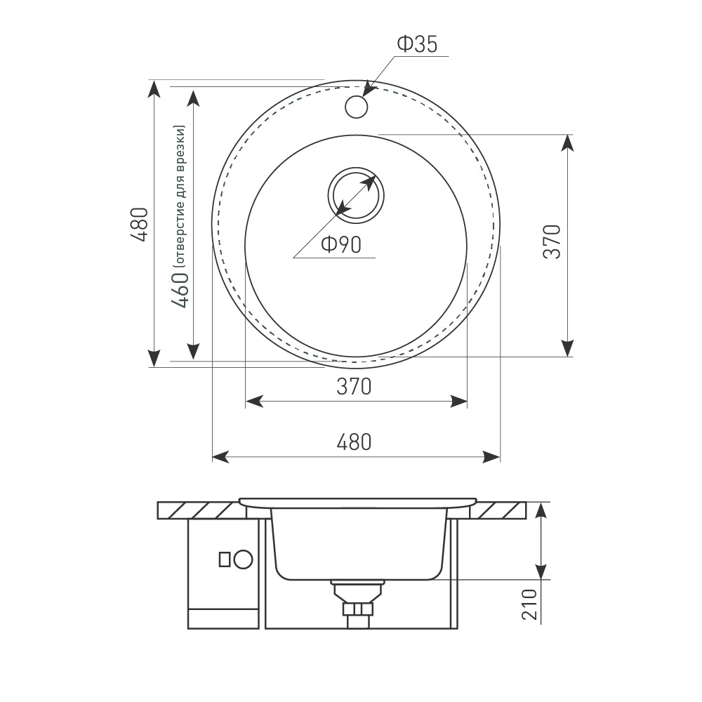 Текстовое описаниеРекомендуется производить выпил отверстия под мойку в столешнице, только после измерения фактических размеров приобретенной мойки.