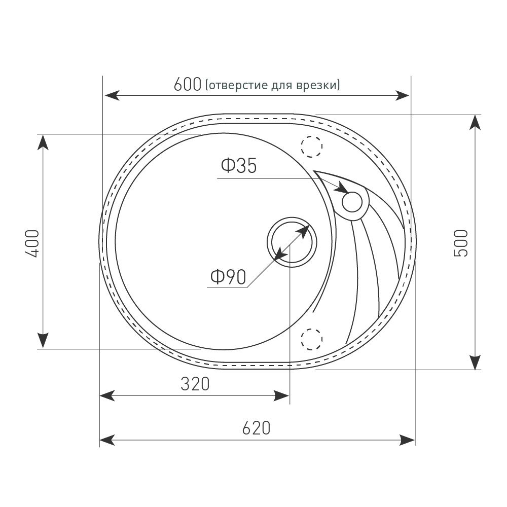 Овальная форма гранитной мойки KREIS OV 620 не оставит равнодушным человека стремящегося к комфорту. Впрочем. также как и дополнительное оснащение гранитным крылом, которое можно повернуть как вправо, так и влево, на выбор пользователя. Это дает неоспоримое удобство при определении места и позиции расположения мойки на кухне. Если с одной стороны стена, холодильник или любое другое препятствие, можно повернуть её в противоположную от него сторону.