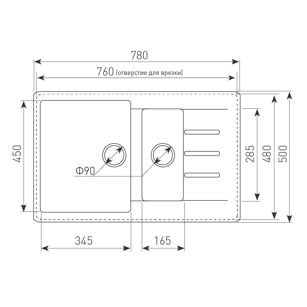Производитель на свое усмотрение и без дополнительных уведомлений может менять комплектацию, внешний вид, страну производства и технические характеристики модели. Рекомендуется производить выпил отверстия под мойку в столешнице, только после измерения фактических размеров приобретенной мойки