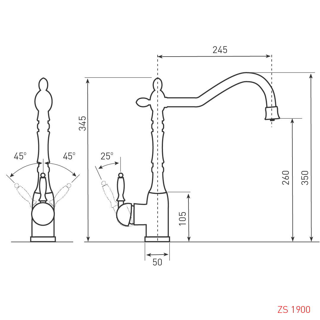| Длина излива | 245 мм |