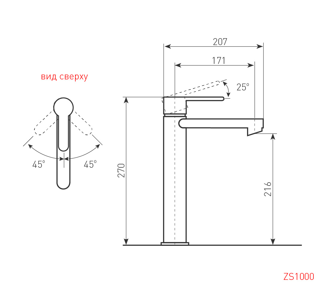 | Длина излива | 207 мм |