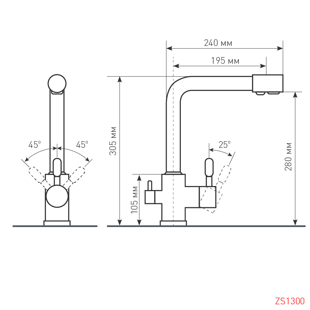 Длина излива 240 мм