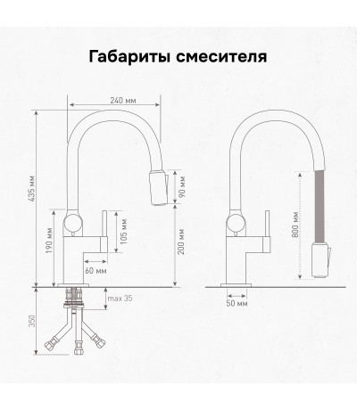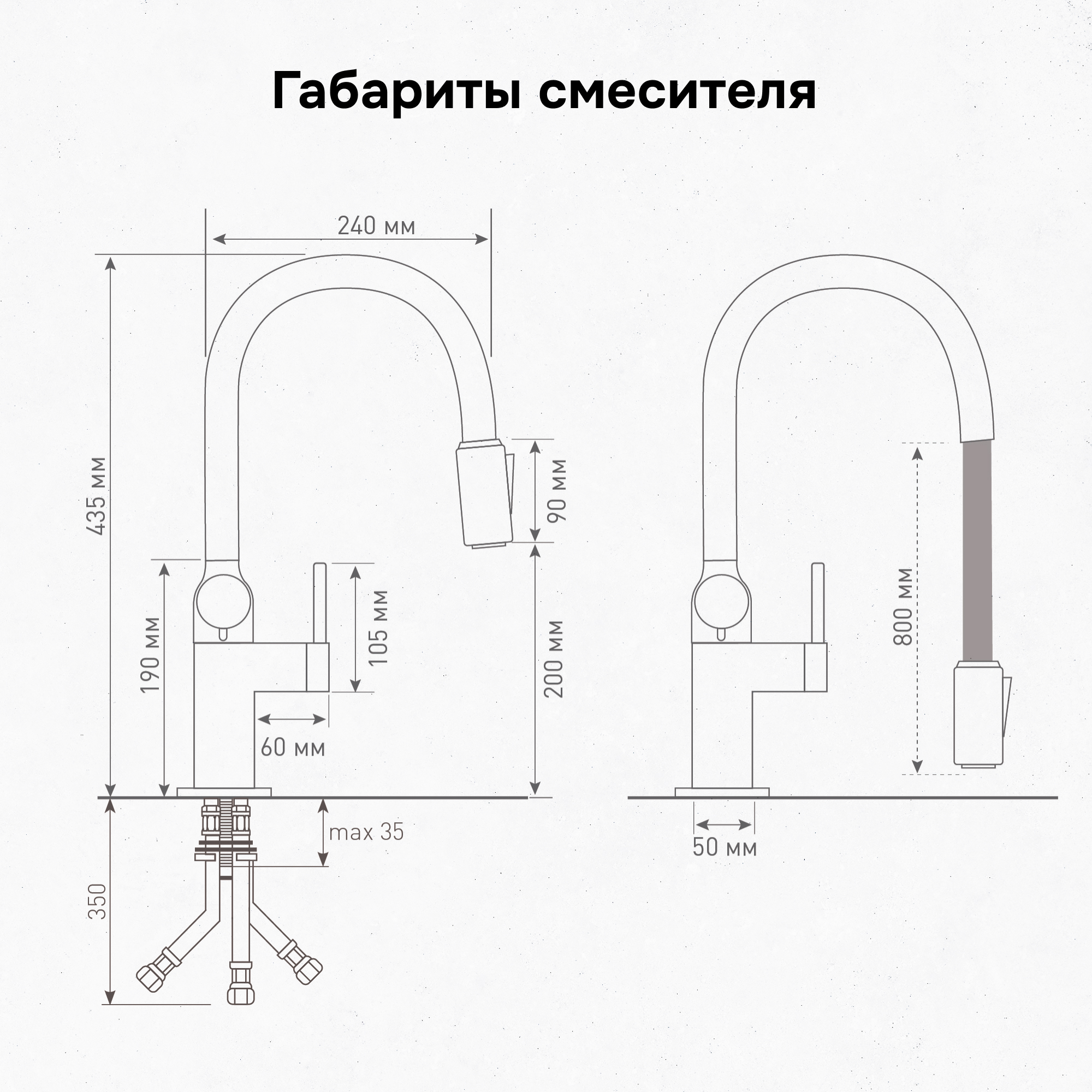 | Тип смесителя | однозахватный с выдвижным шлангом-лейкой |