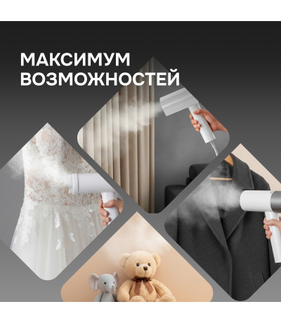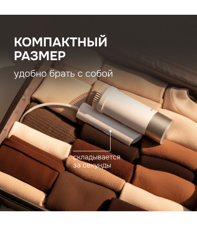 дизайне. Отпариватель складывается пополам, что позволяет экономить до 50%