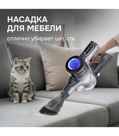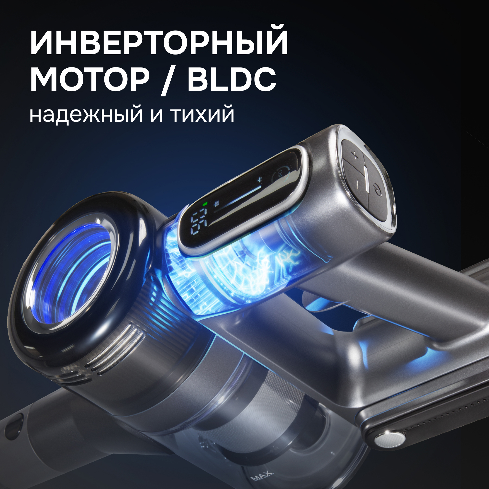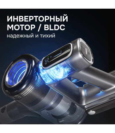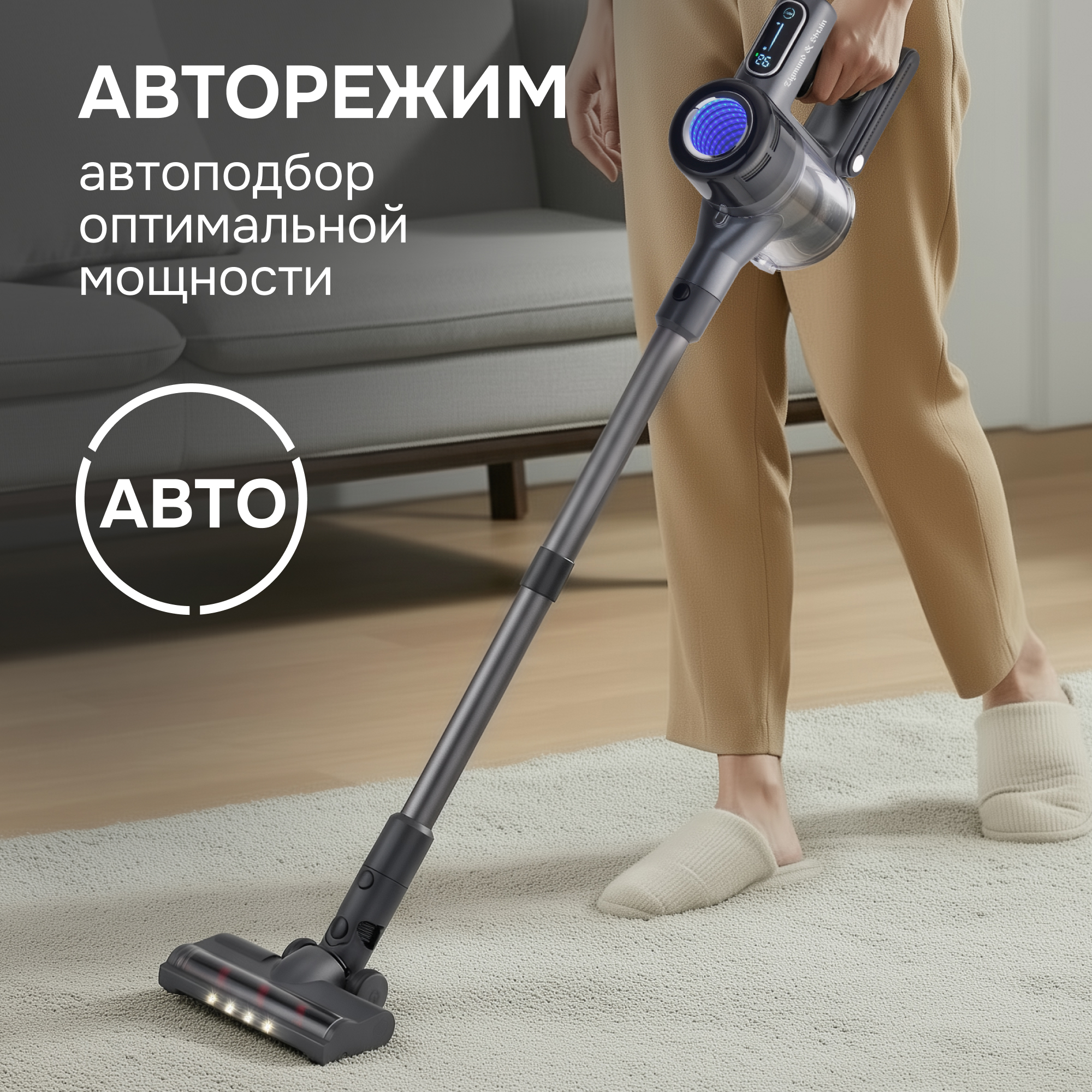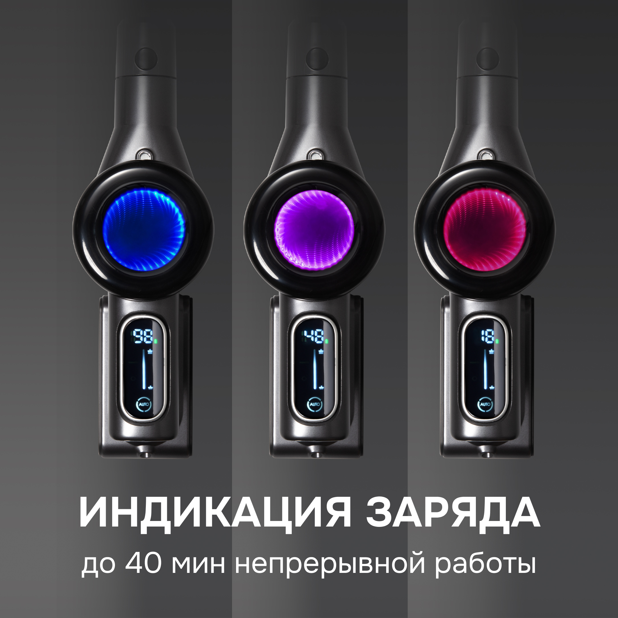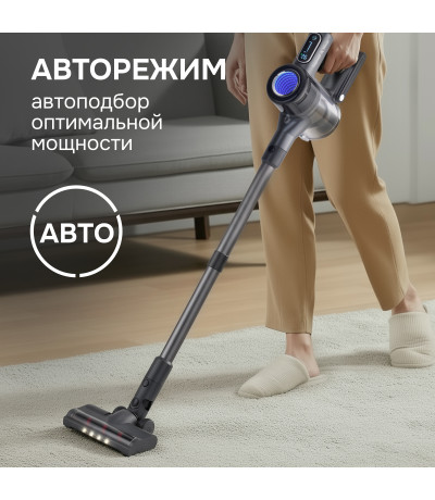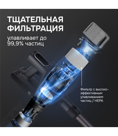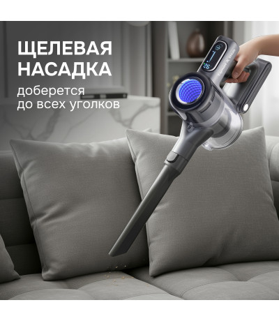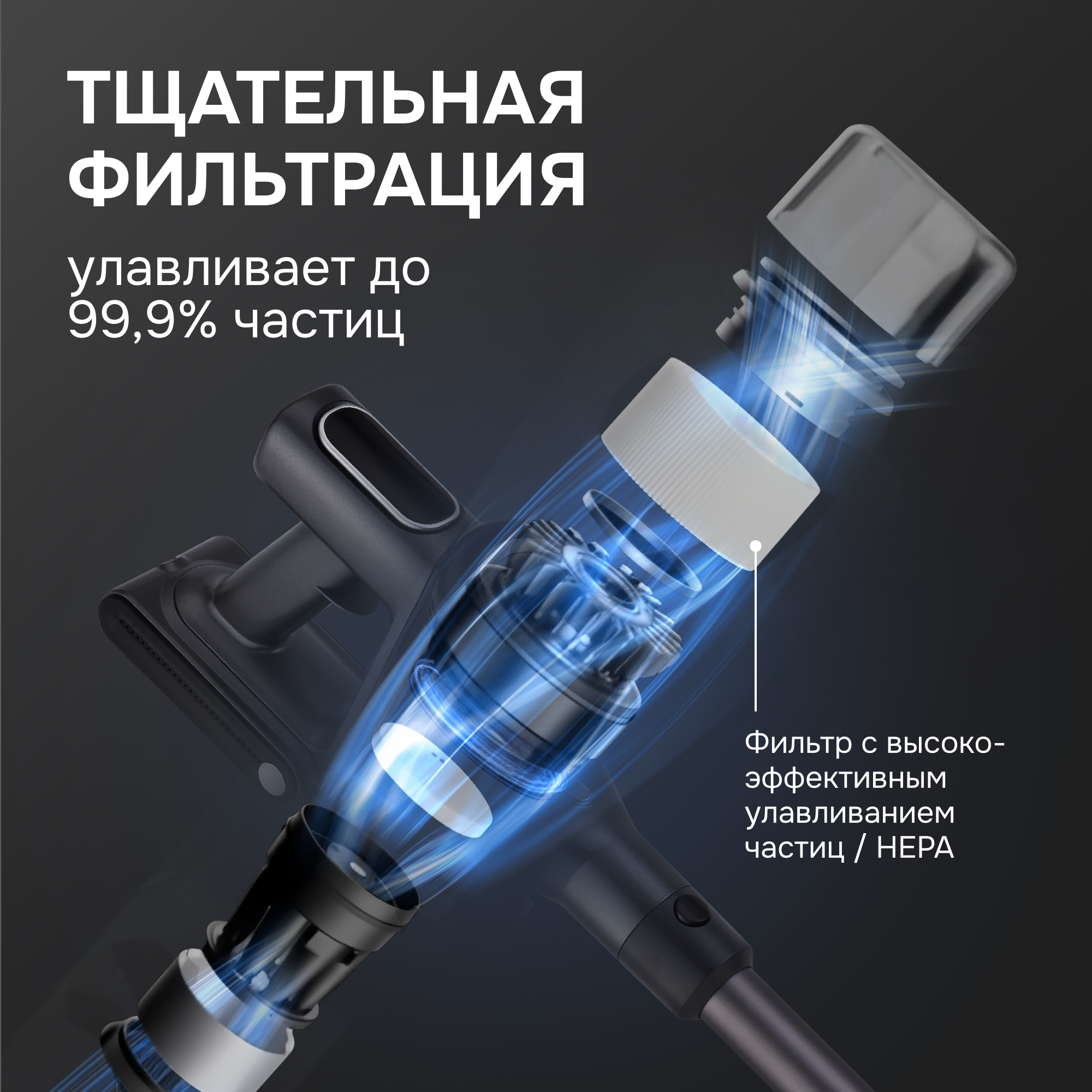 Литий‑ионный аккумулятор даёт до 40 минут автономной работы в экономичном режиме. Убирайтесь в любой зоне дома — от дальних углов до лестниц и балконов — без привязки к розетке.